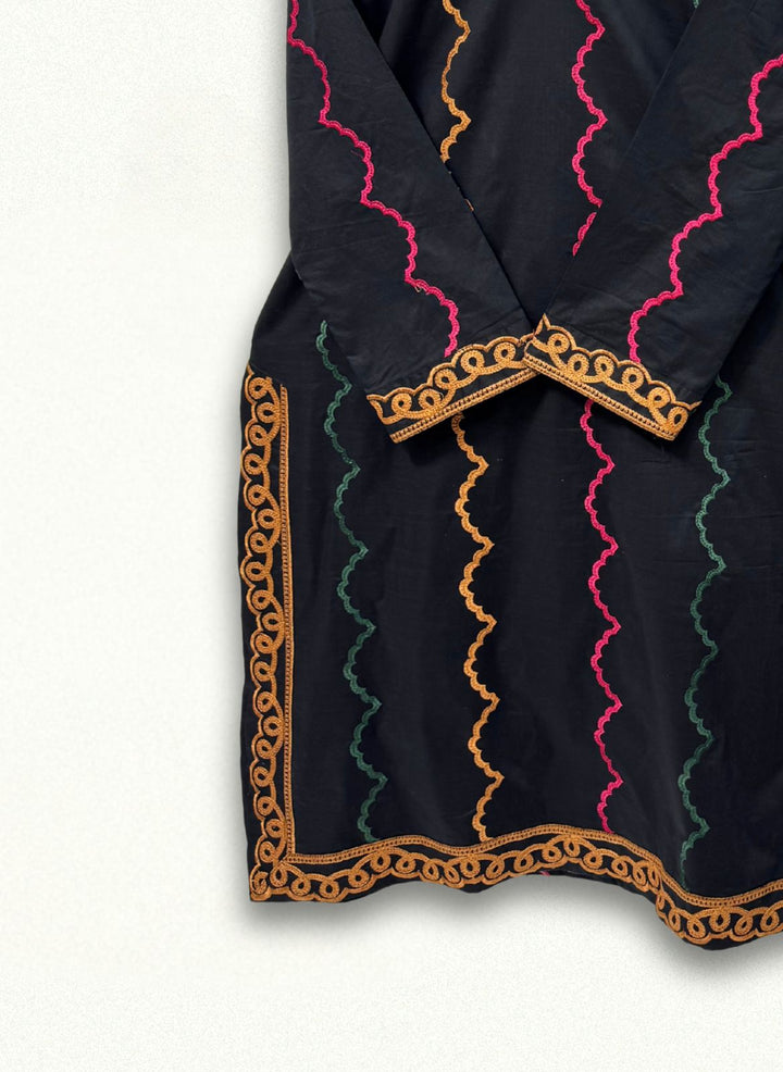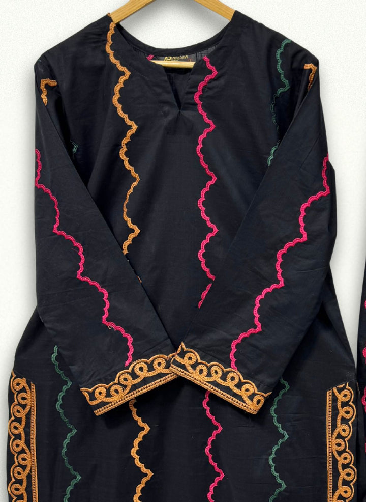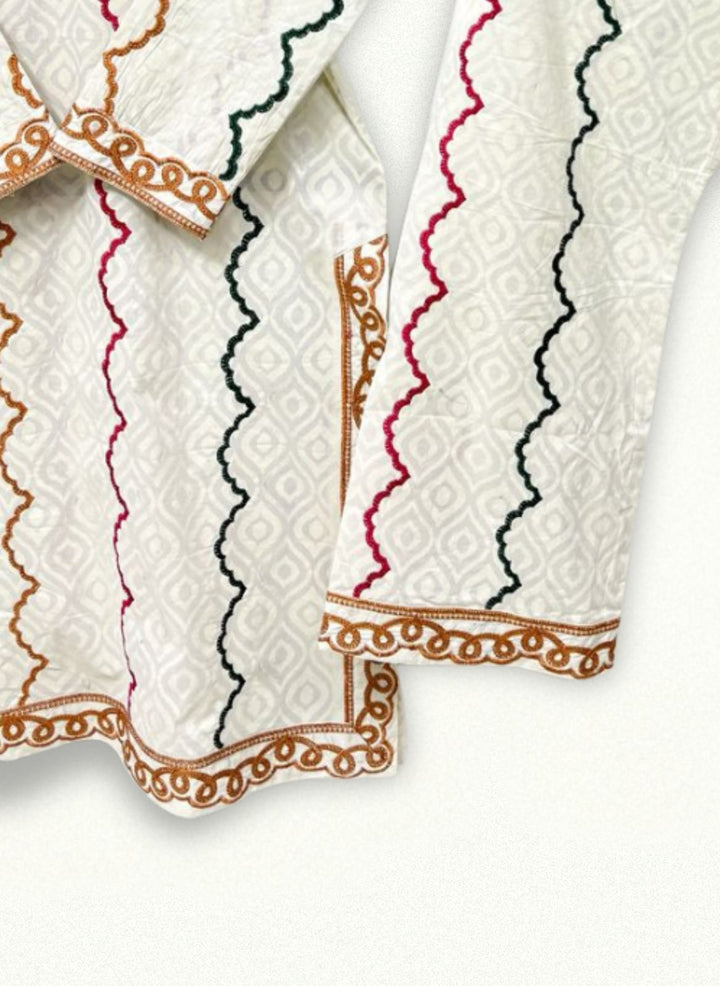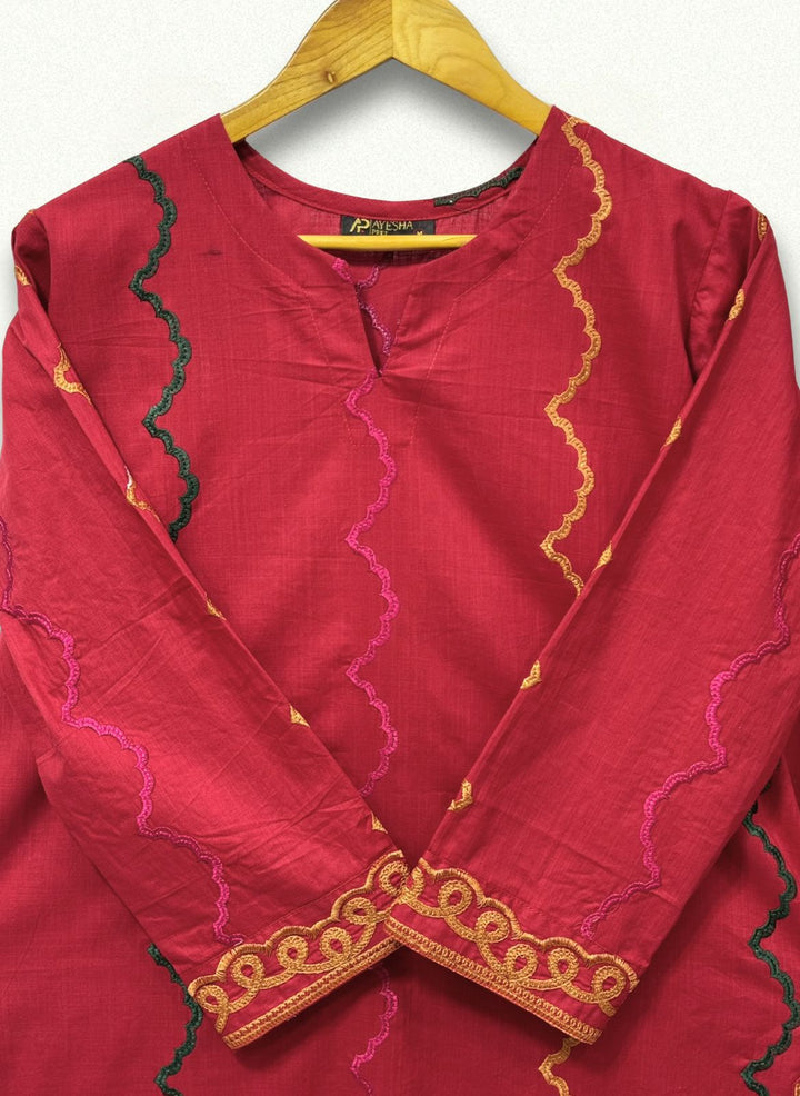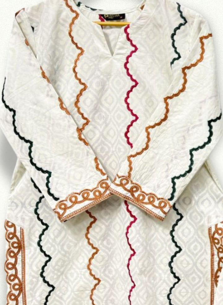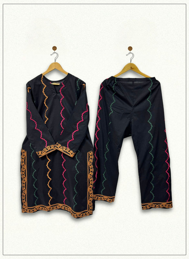 Elegant two-piece embroidered outfit featuring beautiful threadwork and intricate detailing perfect blend of comfort and style.