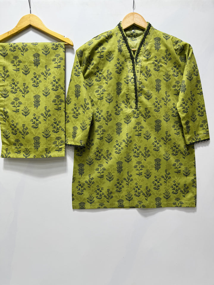 Printed Kids Summer lawn co-ordset collection lace detailing.